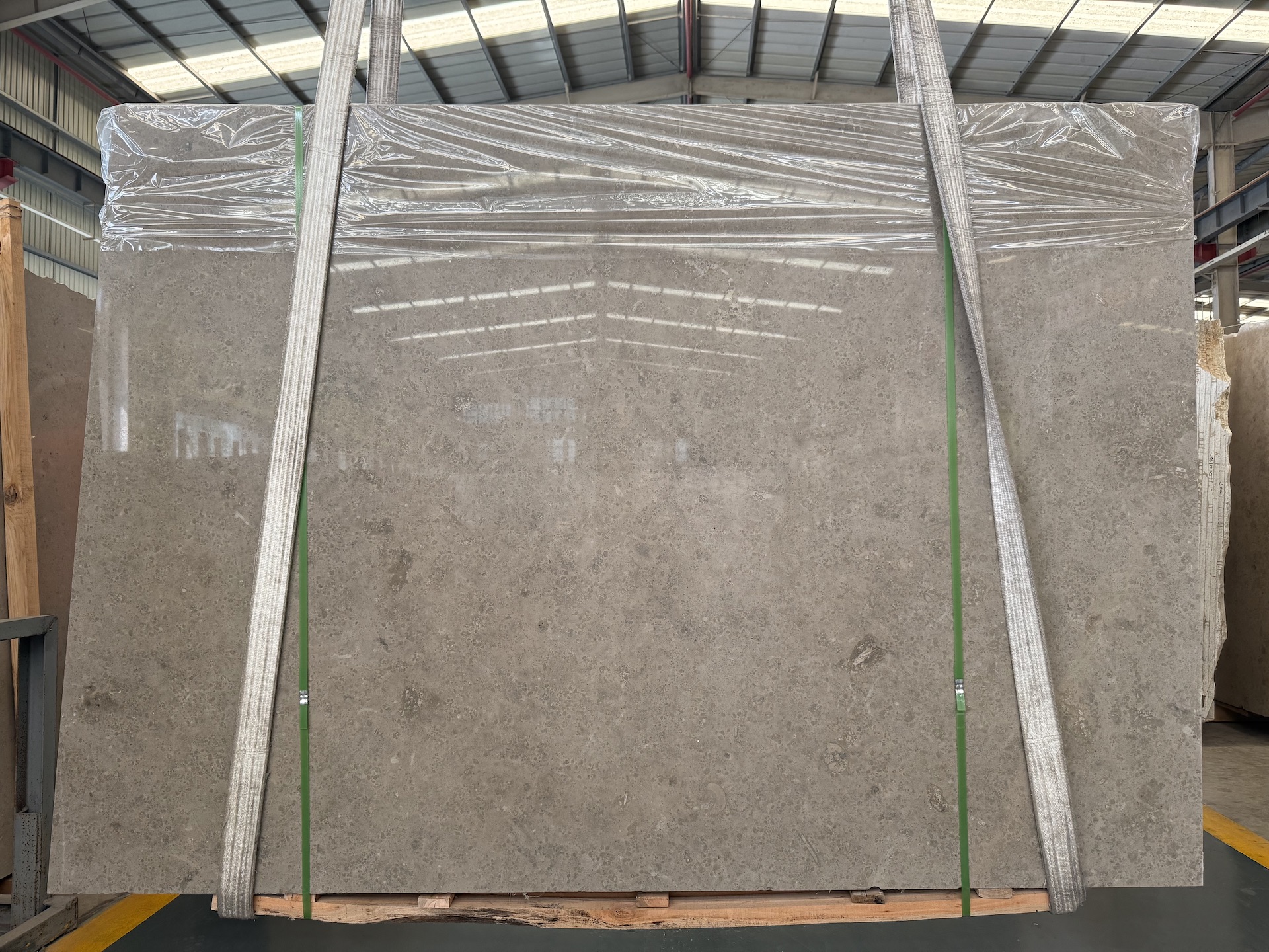 Origin: Germany | Type: Natural Limestone | Color: Grey with Fossil Patterns Available Sizes (customizable):300×300 mm, 300×600 mm, 600×600 mm, 600×900 mm Thickness: 10 mm – 30 mm (custom thickness available) Finishes: Honed / Polished / Brushed / Leather / Sandblasted