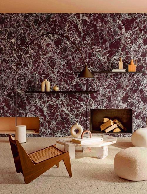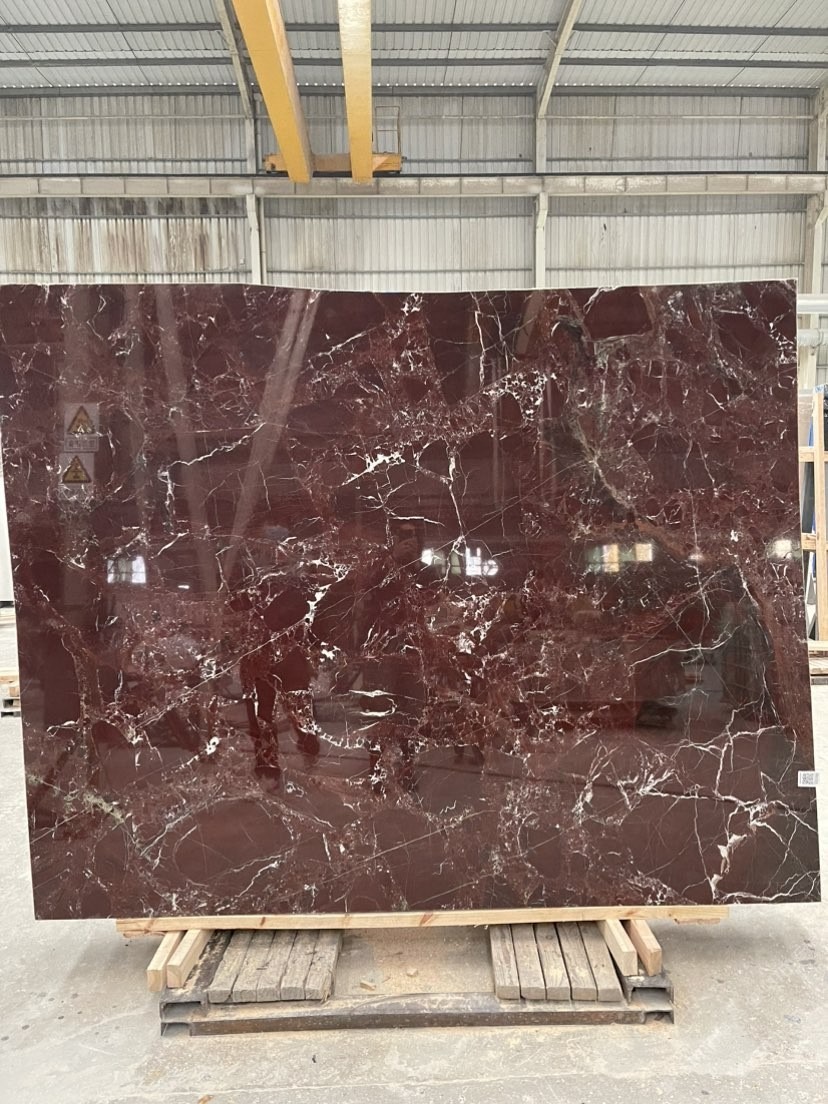 Turkish Rosso Levanto Marble is admired for its rich burgundy-purple background interwoven with striking white veining. The deep, wine-like tone exudes nobility, while the natural white veins create a vivid contrast and enhance its artistic appeal. Compared with the Italian origin, Turkish Rosso Levanto offers a darker hue with more layered patterns and higher cost-effectiveness, making it a popular choice in the global market. It is widely used in flooring, wall cladding, feature walls, staircases, and luxury interior decoration projects, creating an atmosphere of elegance and grandeur.